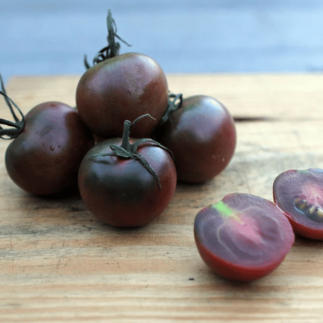 I loved these in my garden last year! For those of you who like the "smokey" taste of the purple-black tomatoes, you'll love them bite-sized!